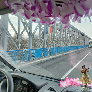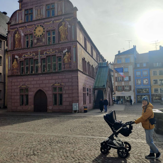 Med 100 Euro fattigare passerade vi grĂ€nsen till Frankrike över en bro. Direkt blev det bilkö och en lite mer hetsig trafikđ. Staden Mulhouse vĂ€lkomna oss ganska omgĂ„ende vid intrĂ€det till landet, dĂ€r det blev paus för lite stadsvandring och lunch. Den första kĂ€nslan för bĂ„de mig och Nathalie var en lite oskön kĂ€nsla nĂ€r vi körde in och parkerade en bit frĂ„n centrum, vilket resulterade i att vi plockade in surfingbrĂ€dan frĂ„n cykelstĂ€llet innan vi traskade in.