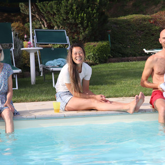 Det var ett härligt återseende. Ralf kände igen oss, viftade på svansen. Knappast Samuel men han sken som en sol! De hade bokat en väldigt trevlig lägenhet som var en del av ett stort hus beläget i Toscana, cirka en timmes bilresa sydost om Florens. Ett stort stenhus bestående av 8 lägenheter vilket vi hade den största av dem. 2 stora sovrum, kök, badrum, egen uteplats och tillgång till pool. En vidunderlig utsikt eftersom huset låg på en höjd. Vägen dit var allt annat än lätt, snarlikt serpentinväg, kändes nästan som hjärtat hamnade i halsgropen då vi fick möte, ett under att Nathalie och Patrik kunde köra där med sin husbil men det gick naturligtvis bra.
