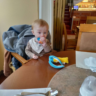 Efter en natt av mysigt smattrande regn på biltaket började vi dagen som vi vanligtvis gör med lite frukost och nyheter. Frukosten, som tidigare var en stillsam, lugn stund där vi kunde äta i lugn och ro, har förändrats i takt med Samuels nya matvanor. Nu är det livat från första stund, maten ska slevas in både snabbt och i stor mängd, allt på frukostbordet är i farozonen och allt som mamma och pappa stoppar i munnen är vill vi ha. Ljuva morgonstund.